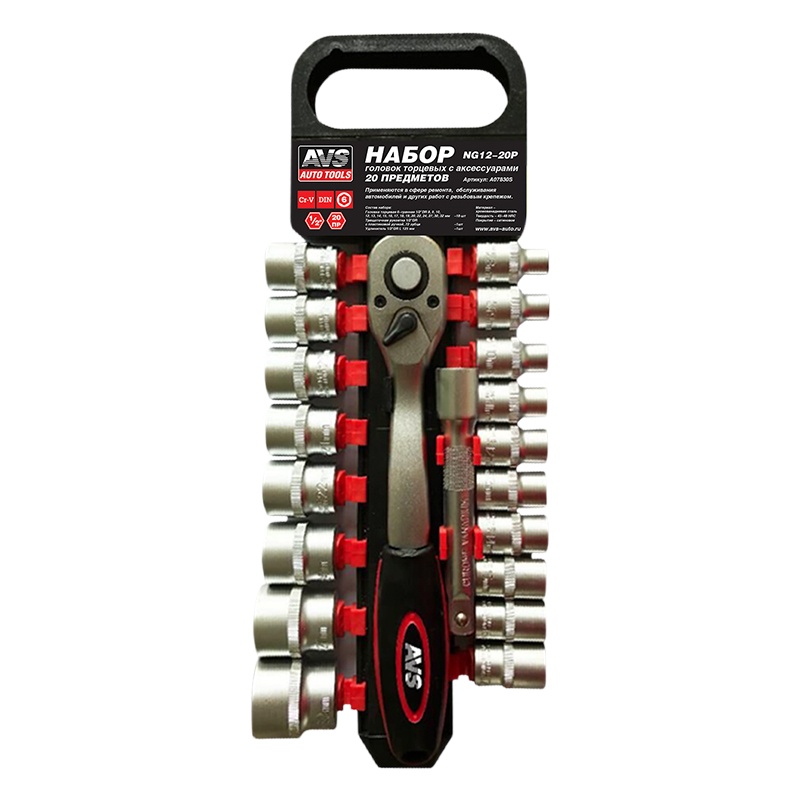 набор головок торцевых с аксессуарами 1/2"DR (8-32 мм) (20 предметов) AVS NG12-20P